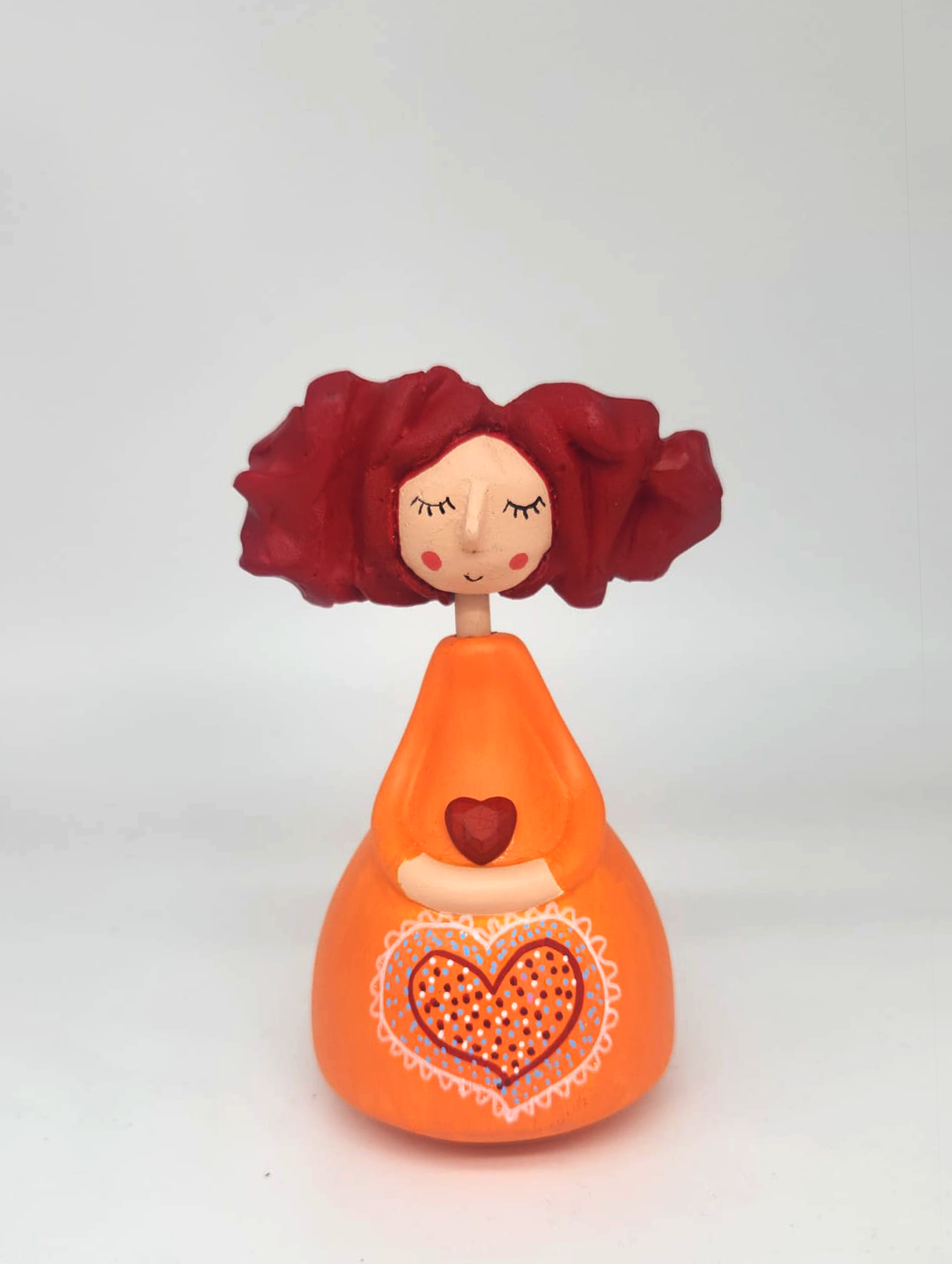 • Figura decorativa de menina com vestido laranja e cabelo vermelho